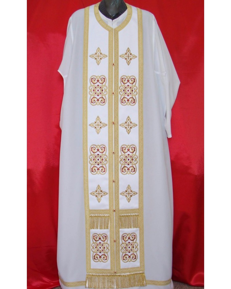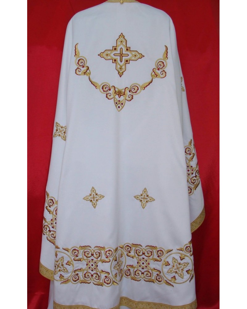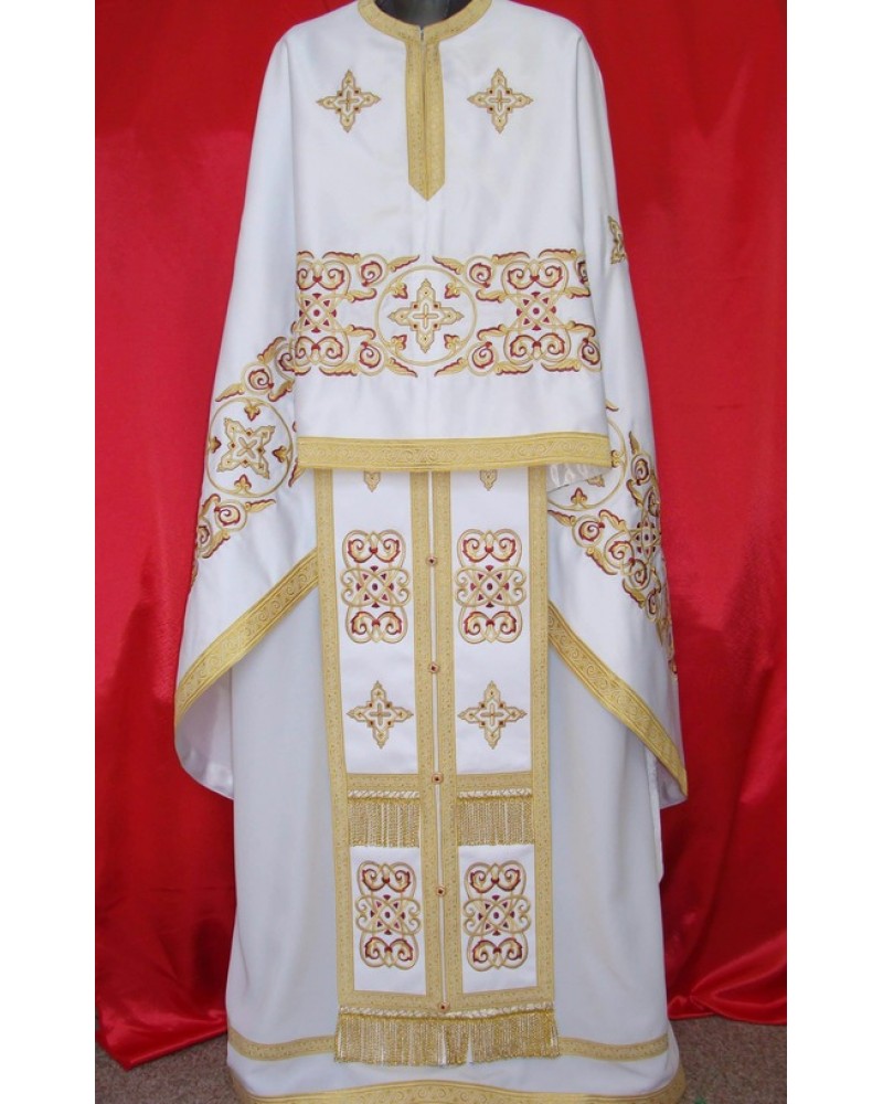 Vesmantul este brodat cu fir metalic ,cu stihar de marochen. La comanda se poate realiza pe mai multe culori.